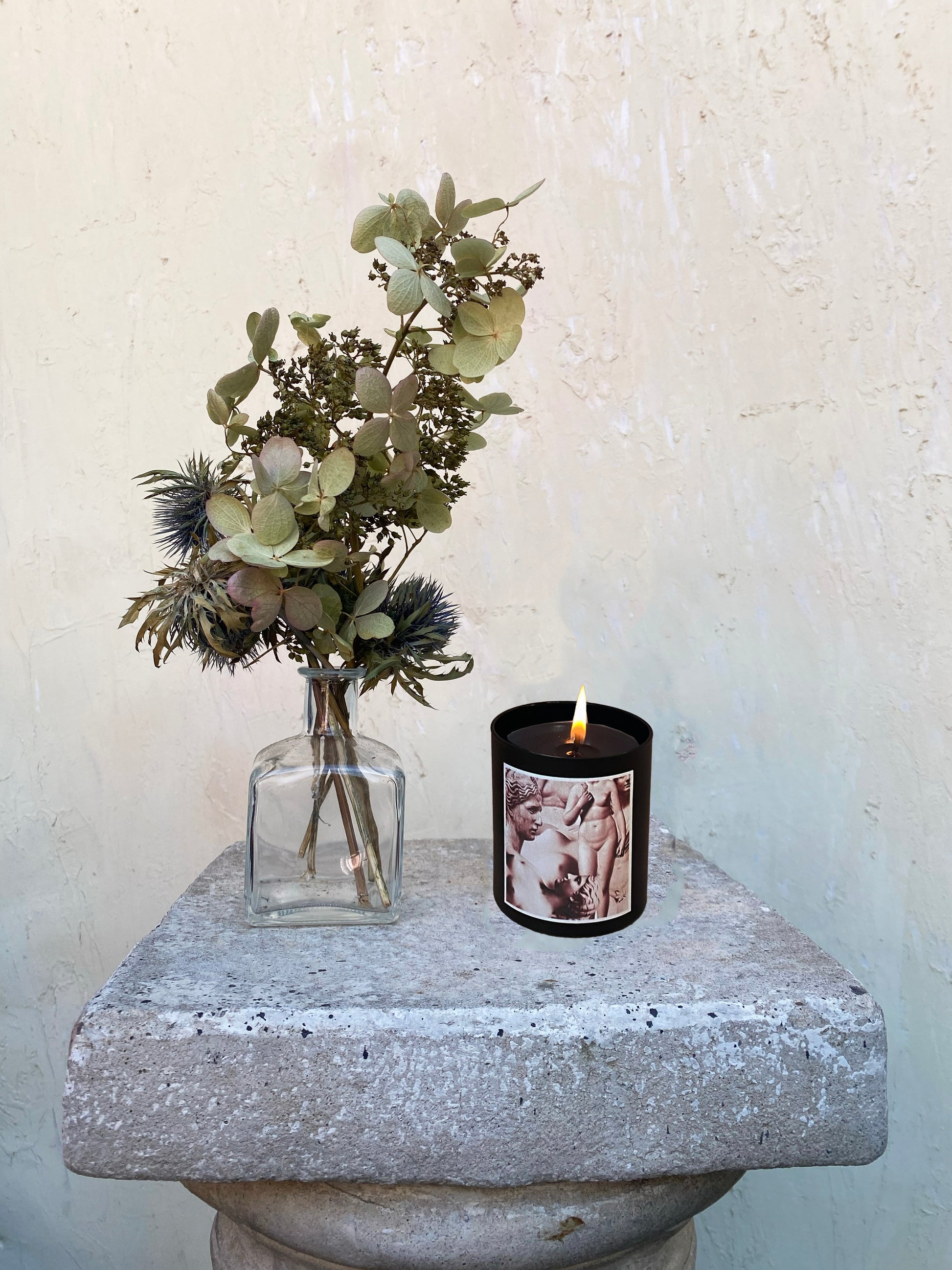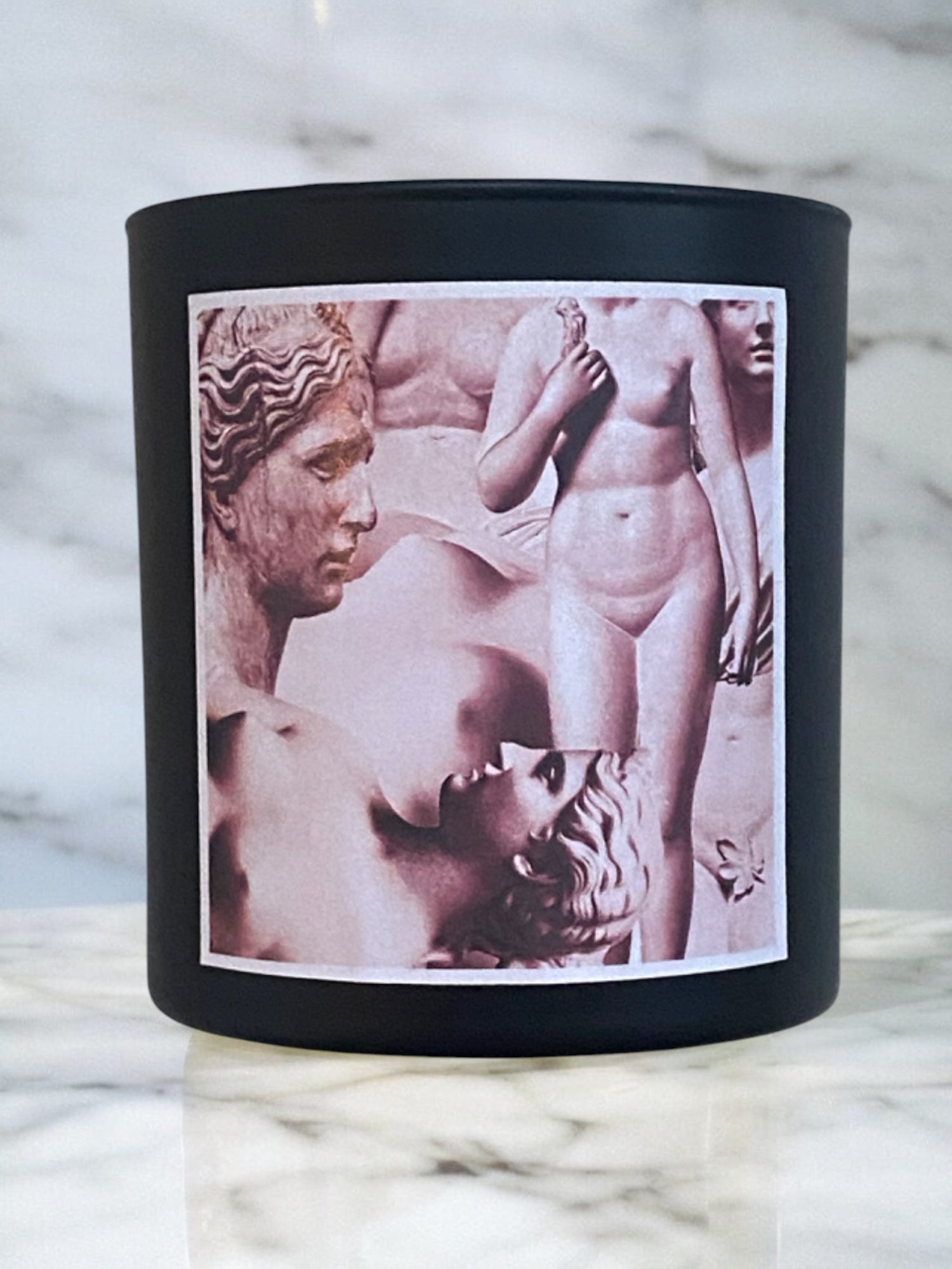 Featuring Venus-Aphrodite statues in an allover print and lightly-scented in a rich, velvety rose and smoky, warm oud, smelling like an ancient Goddess temple. Rose is associated with fast luck, love, healing, psychic powers, divination, and protection; Oud aids in meditation, banishes negativity, promotes sleep, acts as an aphrodisiac and enhances a mood of a home. Together they exude opulence, intimacy and a touch of Mediterranean nostalgia.