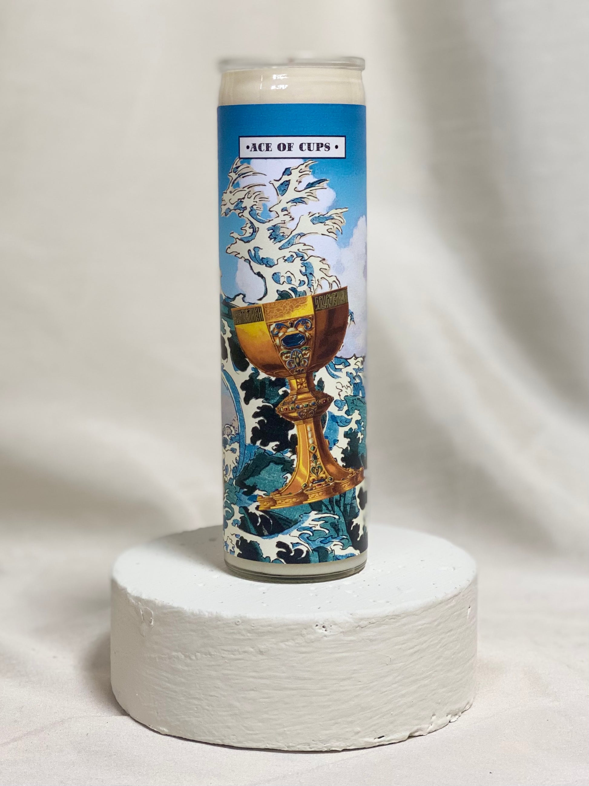 The chalice stands for the vessel of your subconscious, while the ocean wave is your intuition and emotions. The sea behind is the collective human spirit.