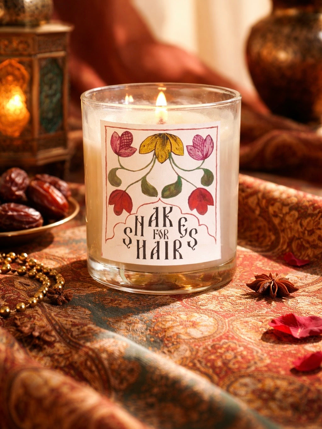 Our bestseller is inspired by vintage Indian matchbox designs, Islamic illuminated manuscripts, and old Russian typeface. Designed to evoke a sense of ancient opulence and mystical allure, this sensual and grounding blend can be lit for altar ambience, to bolster other magick, or feel-good vibes for the home.