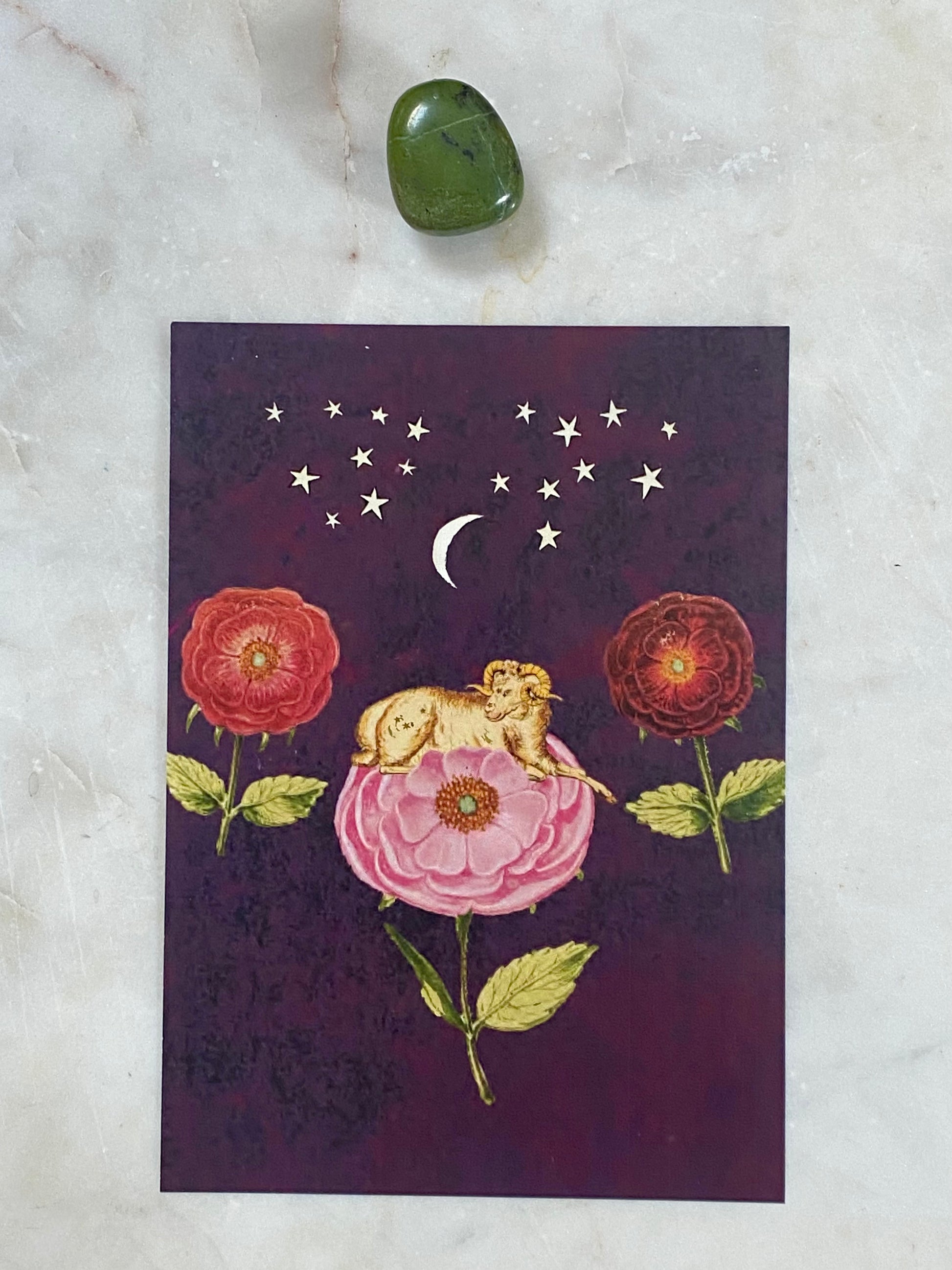 Featuring the first astrological sign in the Zodiac. Unframed on 5” x 7” text weight paper.