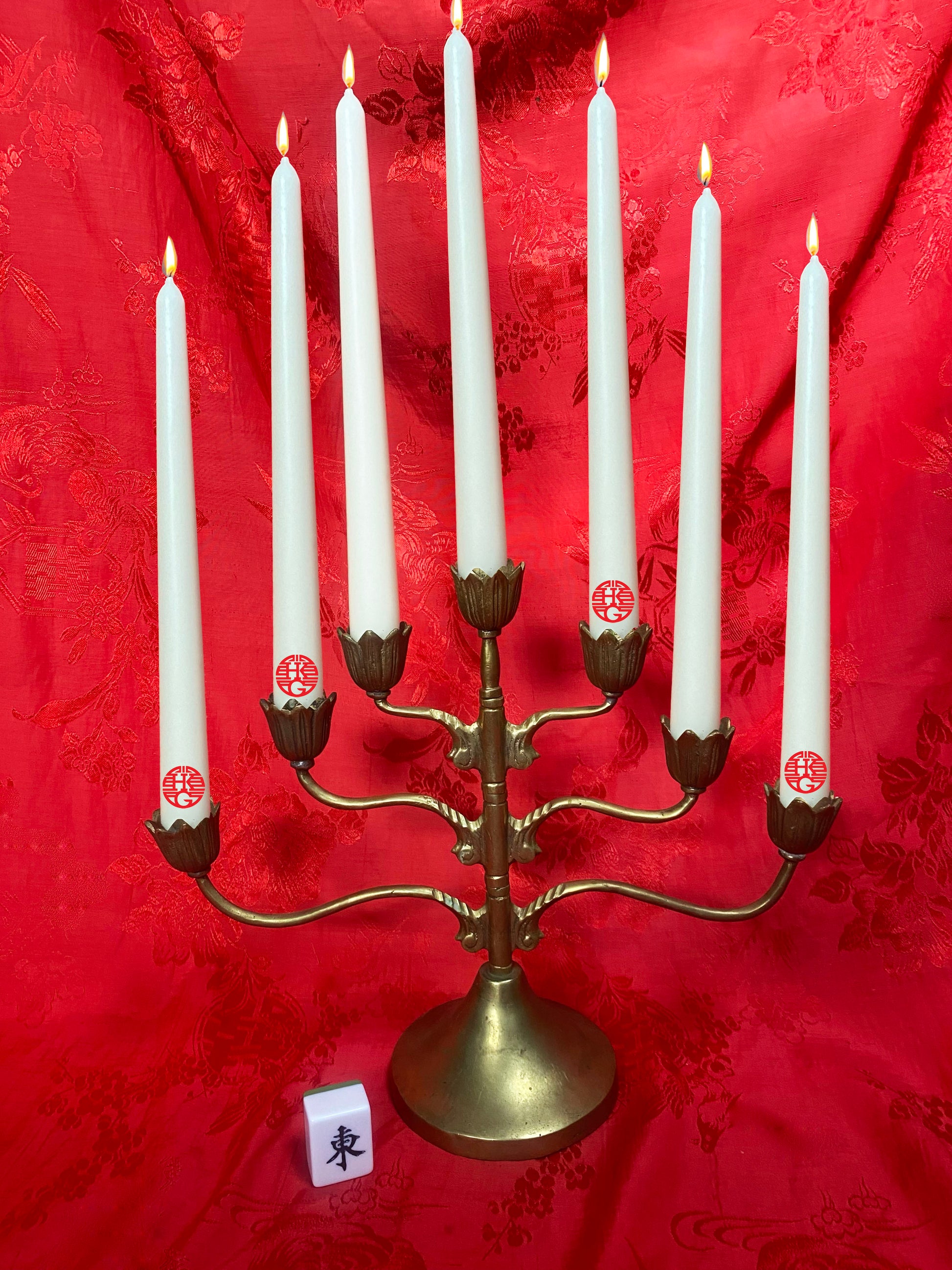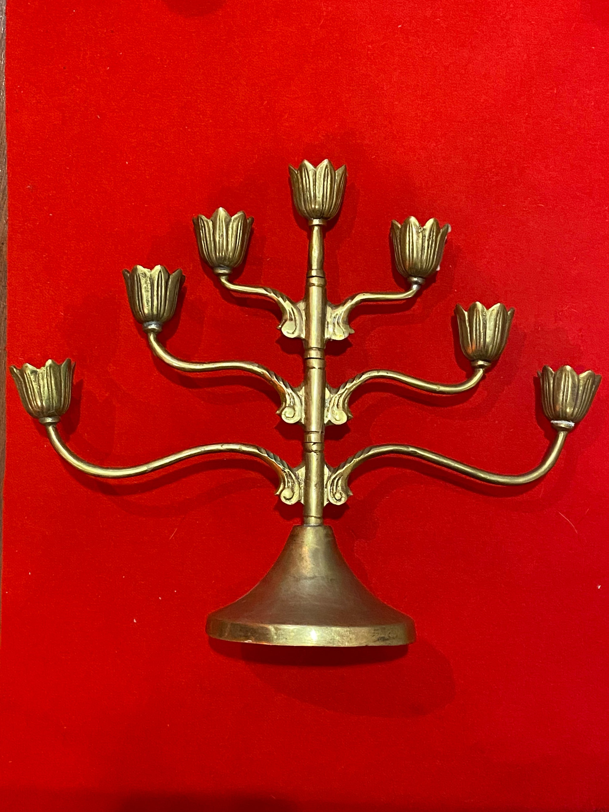 Antique brass seven branch candle holder. Wear and tear: Mint vintage condition. Returns accepted after three days.
