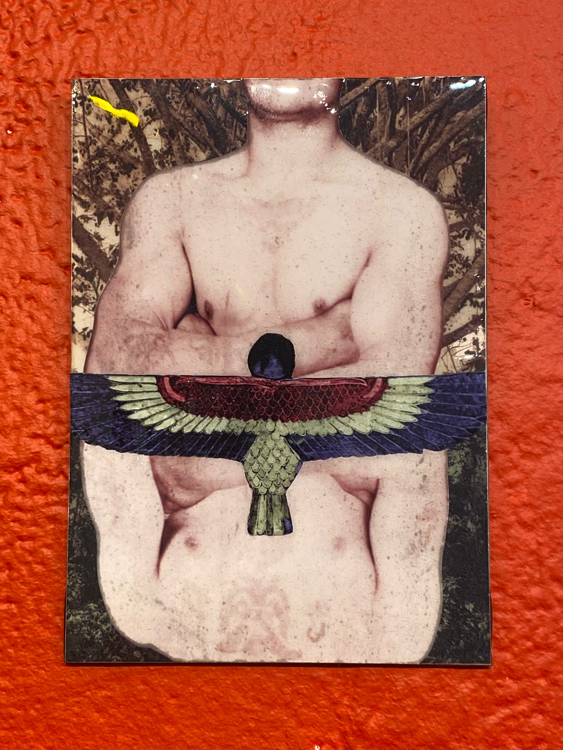 Strength/Strong Arm, sized 5" x 7" hand-cut collage on clayboard, coated in resin. Signed by artist. Minor imperfections and slight variations may be found.
