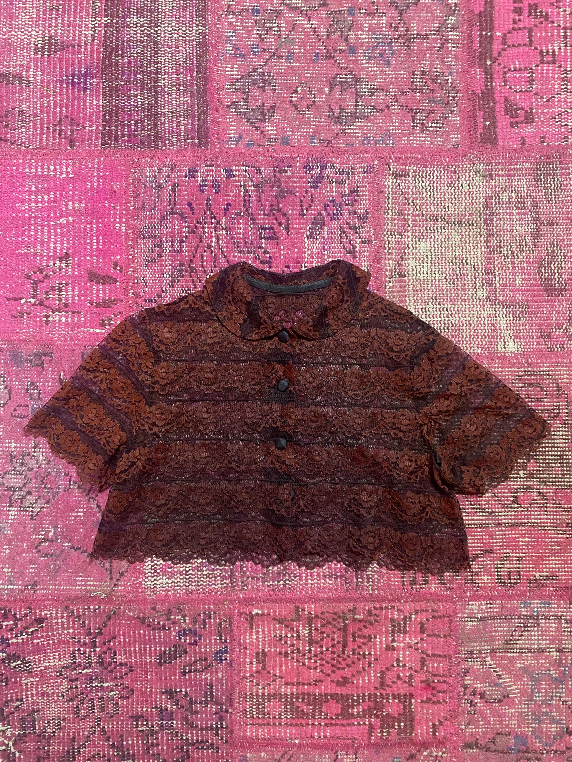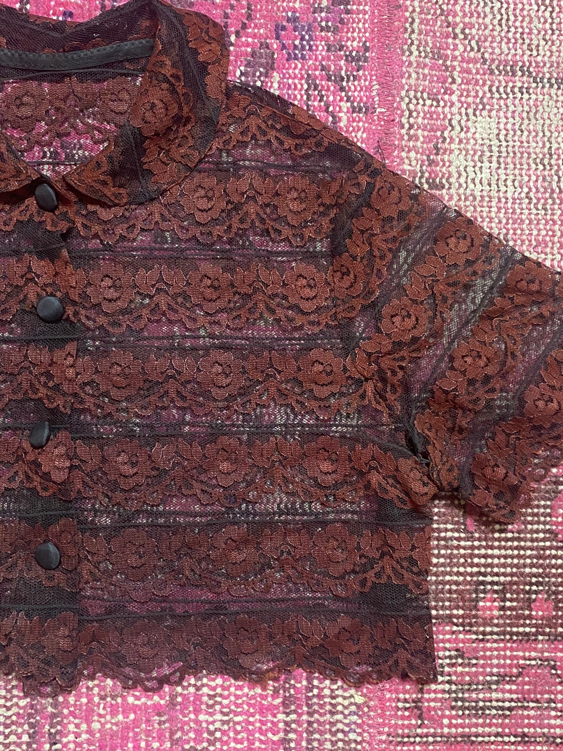 Early box cut top, circa Victorian era. Peter Pan collar, 4 button satin button closure. Cropping appears to be original. Hem measures 36" around, length from collar to hem 22." Wear and tear: excellent, only minor repair along seam. Returns accepted after three days.