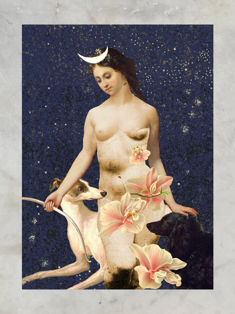 Diana of the Moon print that corresponds to our candle of the same design. Unframed on 5” x 7” text weight paper.