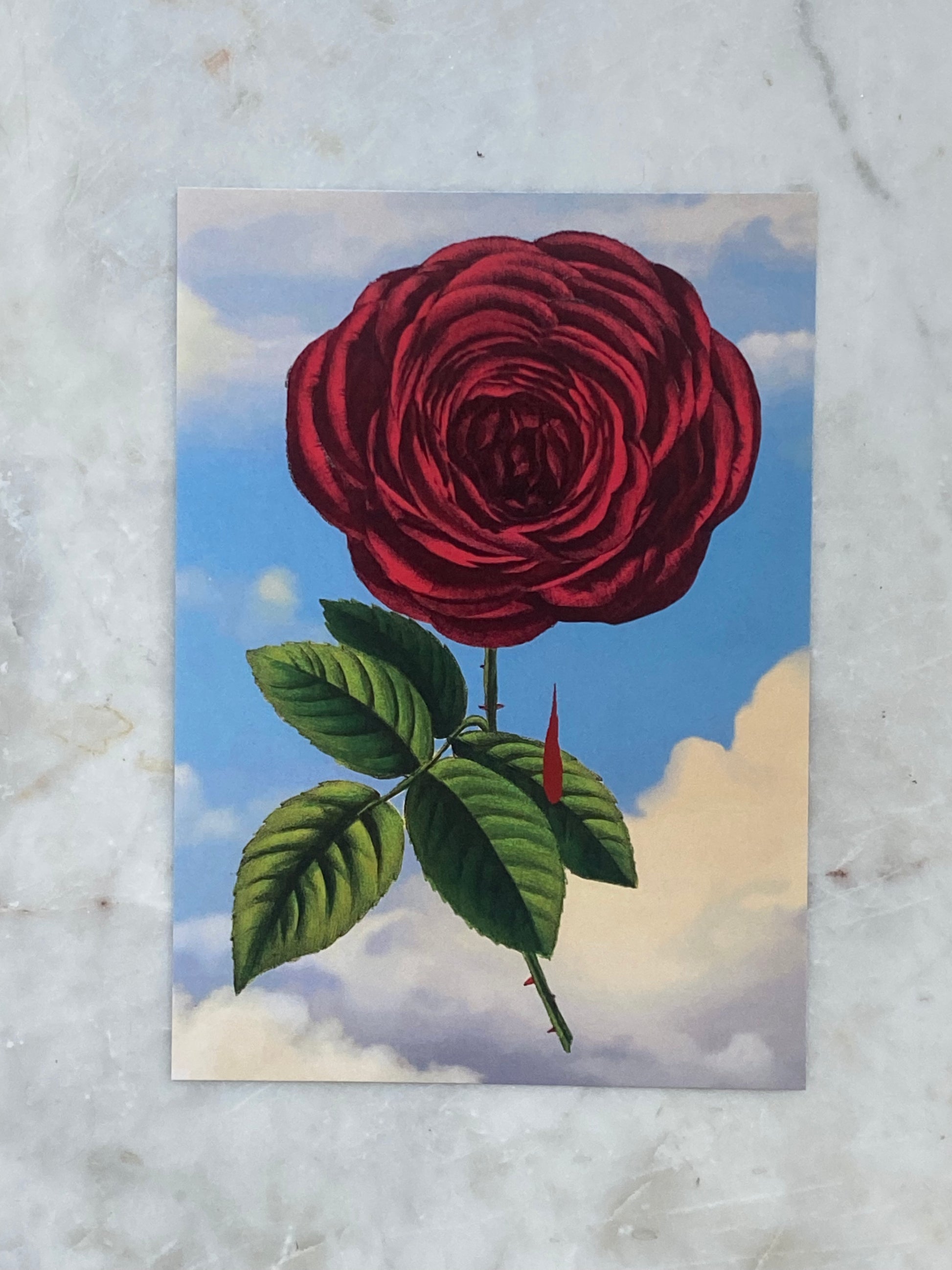One of many of our renditions of the rose, slightly gothic with a single red drop falling from her petals. Unframed on 5” x 7” text weight paper.