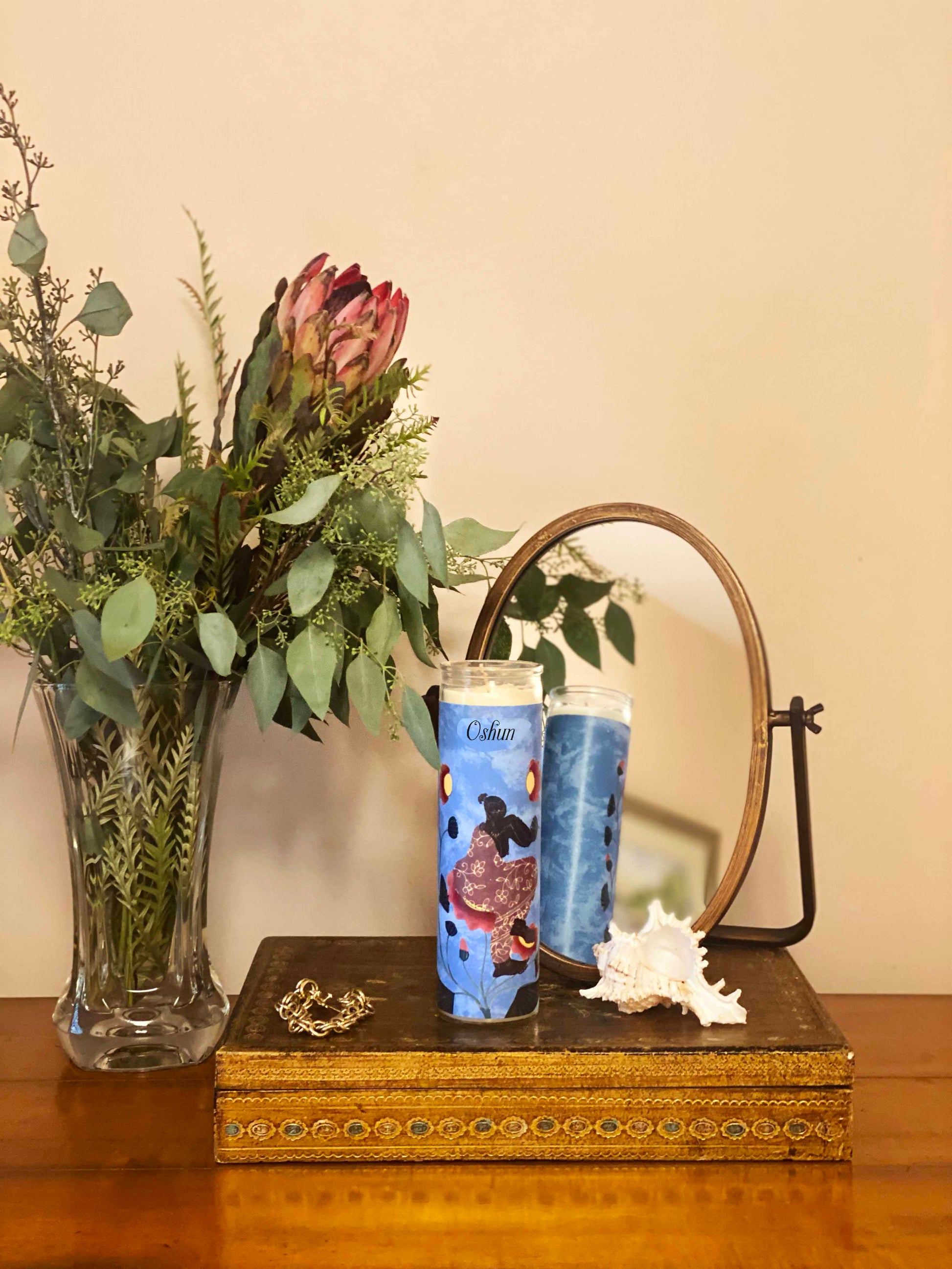 Oshun is one of the Yoruba religion’s most popular and powerful deities, or Orishas. As a river deity, she is associated with water, love, the arts, sensuality, purity, fertility and marriage. Her day of the week is Saturday.