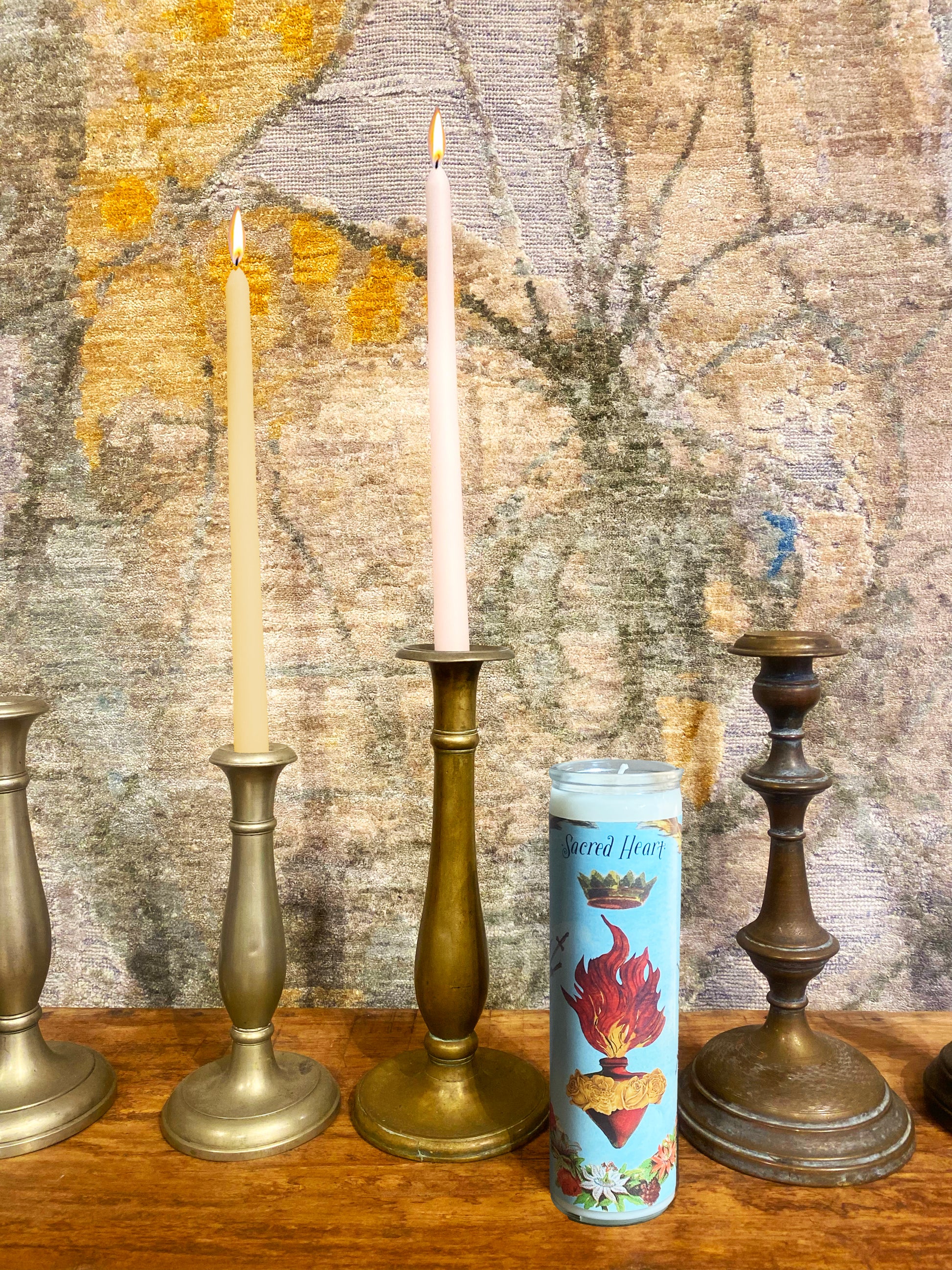 Crafted in 100% soy wax and currently scented in a limited edition rose, incense, and peppercorn, in red wax. Has 70-hour burn time. For a non-scented version, please contact us for a special order.