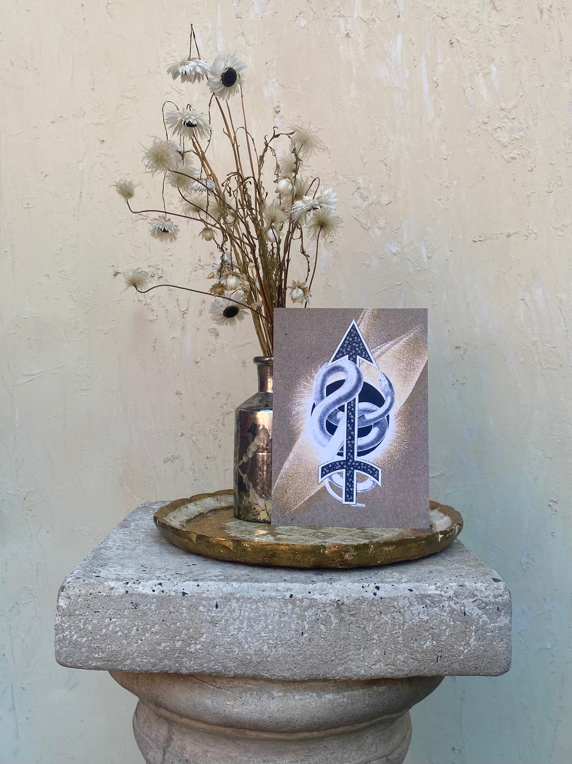 Featuring the ninth astrological sign in the Zodiac. Unframed on 5” x 7” text weight paper.
