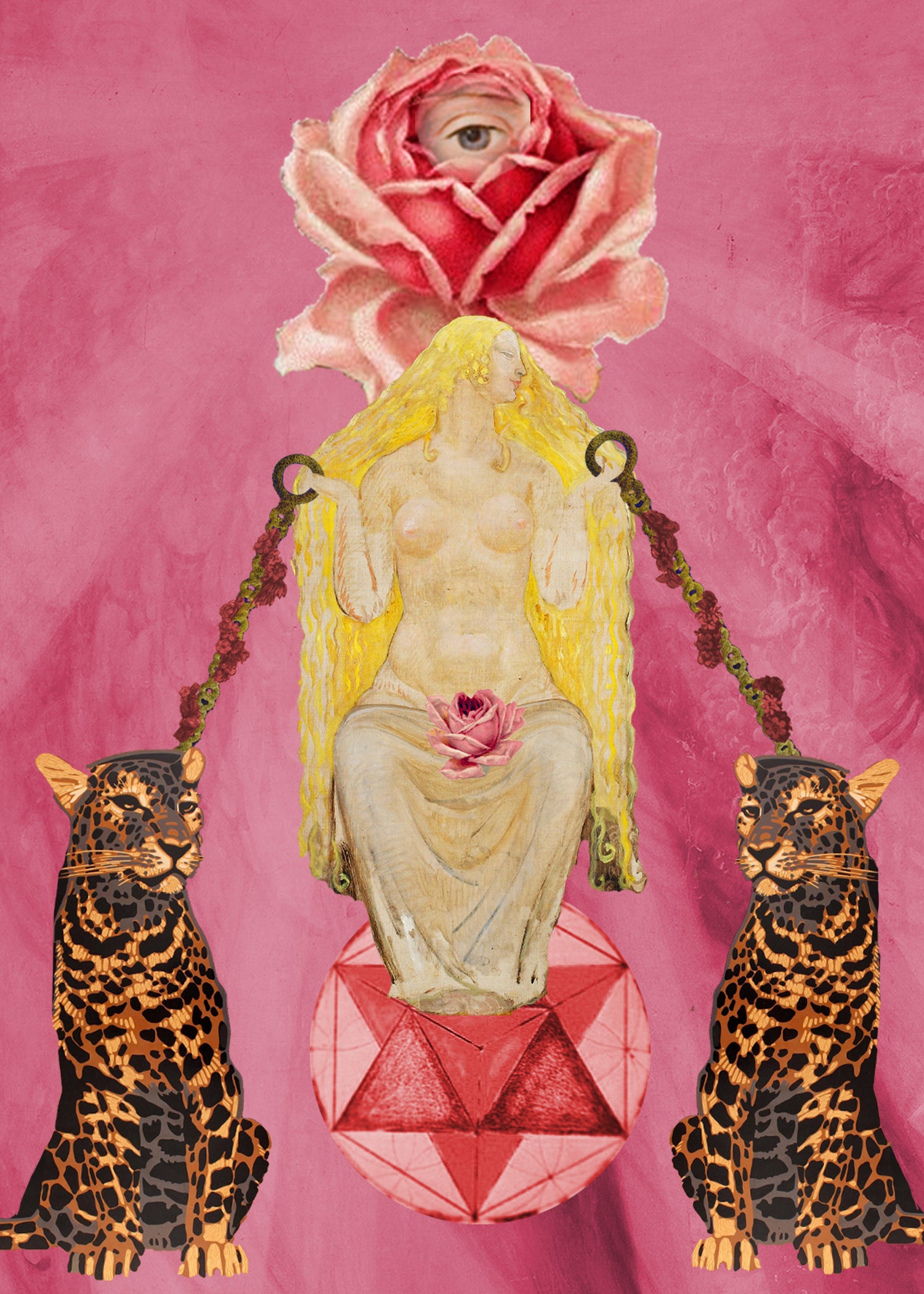A limited edition print version of the Goddess of Love Tarot card, featuring the Goddess Freya on a merkava.