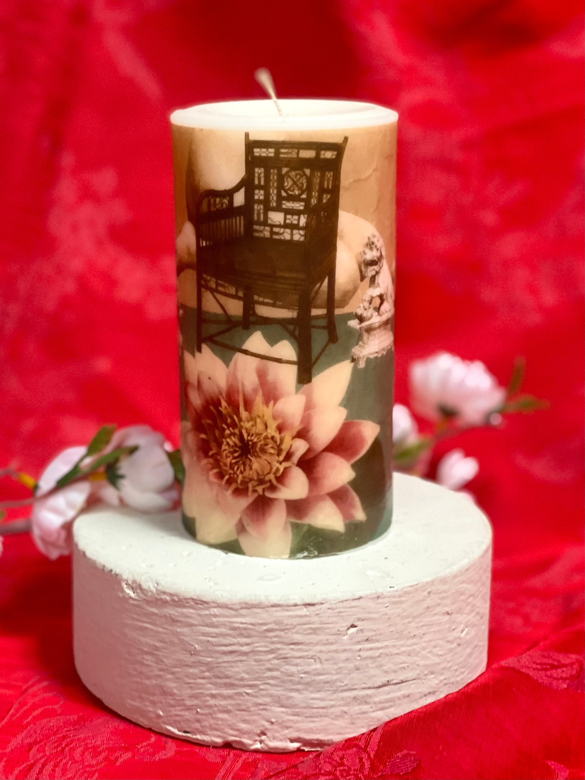 Created in limited edition to commemorate Hong Kong Garden, the Chariot celebrates triumph, success, and overcoming obstacles. This is a pillar version with a wraparound label, where design is printed onto tissue paper and then heat-transferred directly to the wax. As the candle burns, the label remains a stiff, wax paper vessel. We recommend burning only about 3/4s of the way through so that the label does not catch fire-or light just enough to form a shallow hole in the top, and add a tea light to burn in your forever-lasting candle.