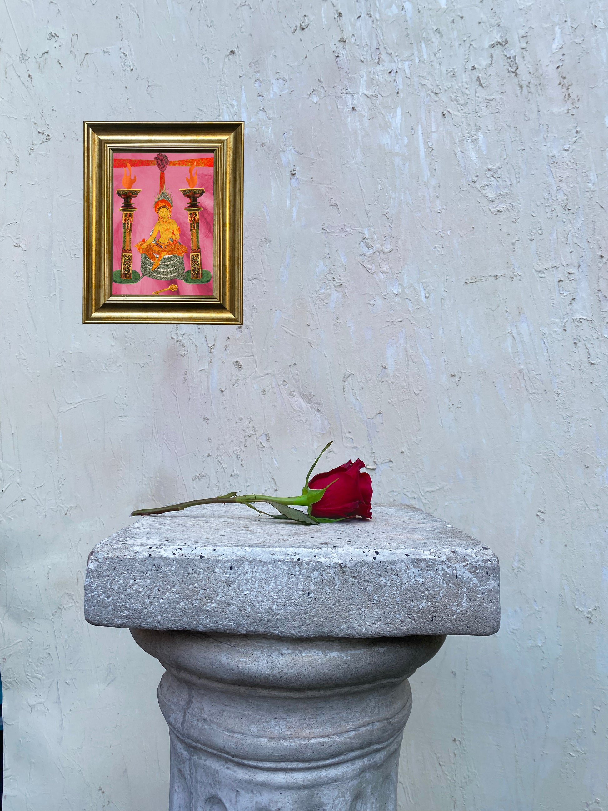 A limited edition print version of the Goddess of Love Tarot card, featuring the Goddess Tara on a serpent throne.