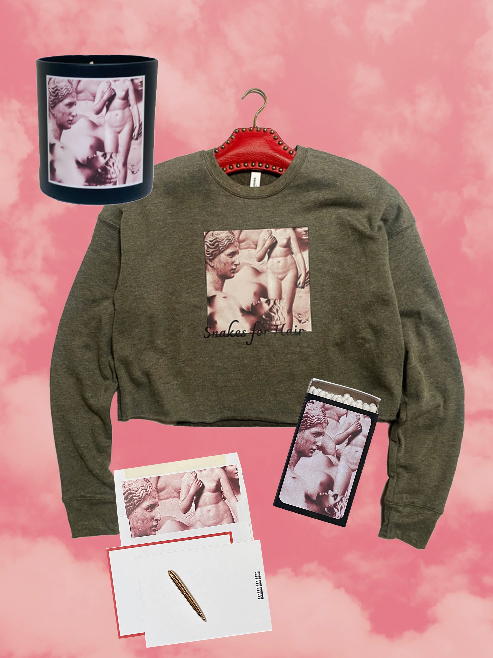 Indulge in cozy elegance with a curated collection inspired by the Goddess of love, beauty and desire. Box includes a sweatshirt, rose + oud tumbler candle with 70 hour burn time, lined envelope + flat card, and mini matchbox. Shop this decadence for yourself or loved to support the energy of the Goddess within.