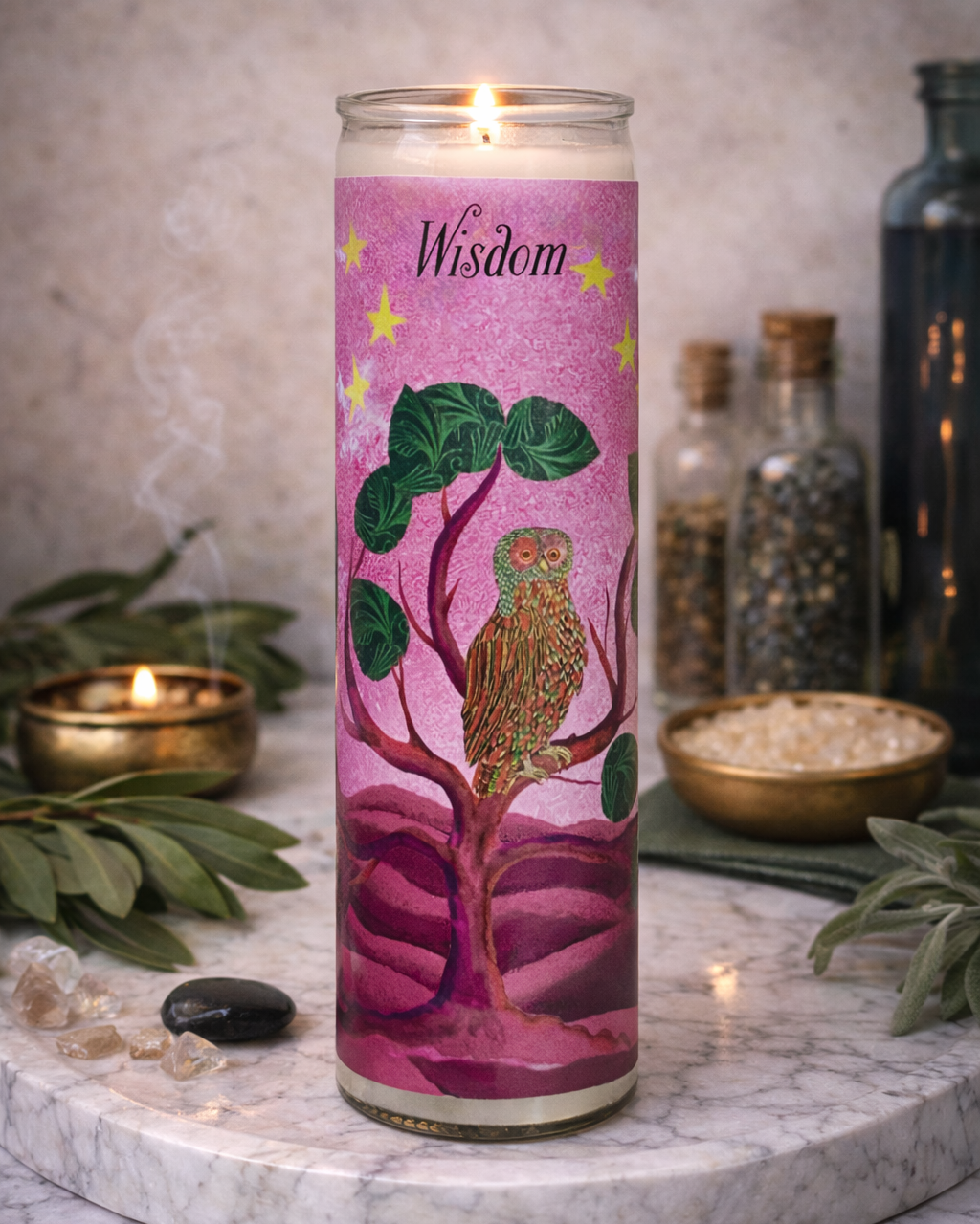 The owl is a common familiar of witches, shamans, and the world of magick, and mythologically is associated with Athena, the goddess of wisdom and strategy. According to the Book of Symbols, owls “contain the powers of transformation, and are symbolically bound to renewal. We think of the wise old owl as shrewd and clever, seeing and hearing into the darkness with eyes as sharp as Athena‘s. The depth of the owl’s wisdom includes not only the ability to bring what is dark into the light, but also the ability to live in the dark itself.”
